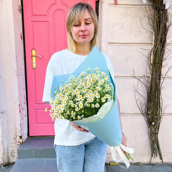 Лента атласная – 1 шт.Тишью – 2 шт.Аквапак – 1 шт.Матрикария (Ромашка Камила) – 15 шт.Корейская пленка – 3 шт.