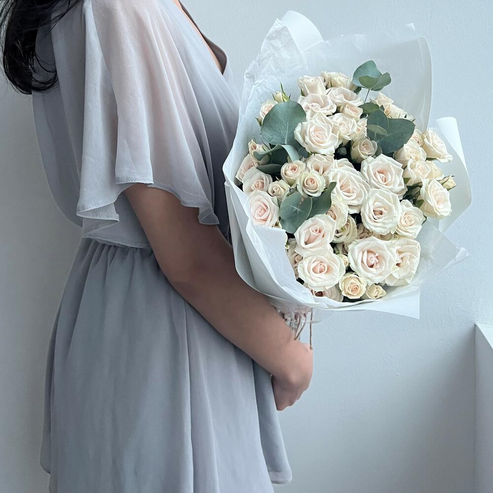 15 кремовых кустовых роз (букет N18)