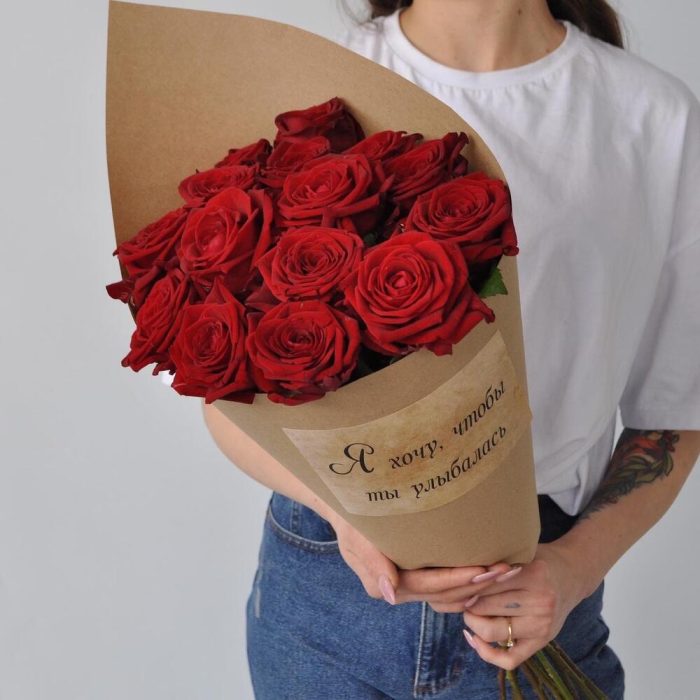 Роза – 15 шт.Крафт упаковка – 1 шт.