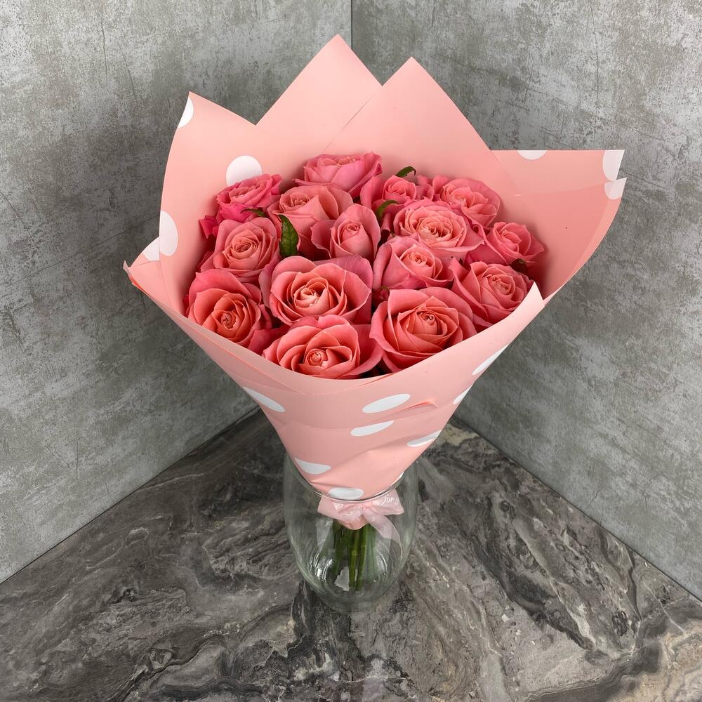 Роза – 15 шт.Упаковка дизайнерская – 3 шт.Атласная лента – 1 шт.