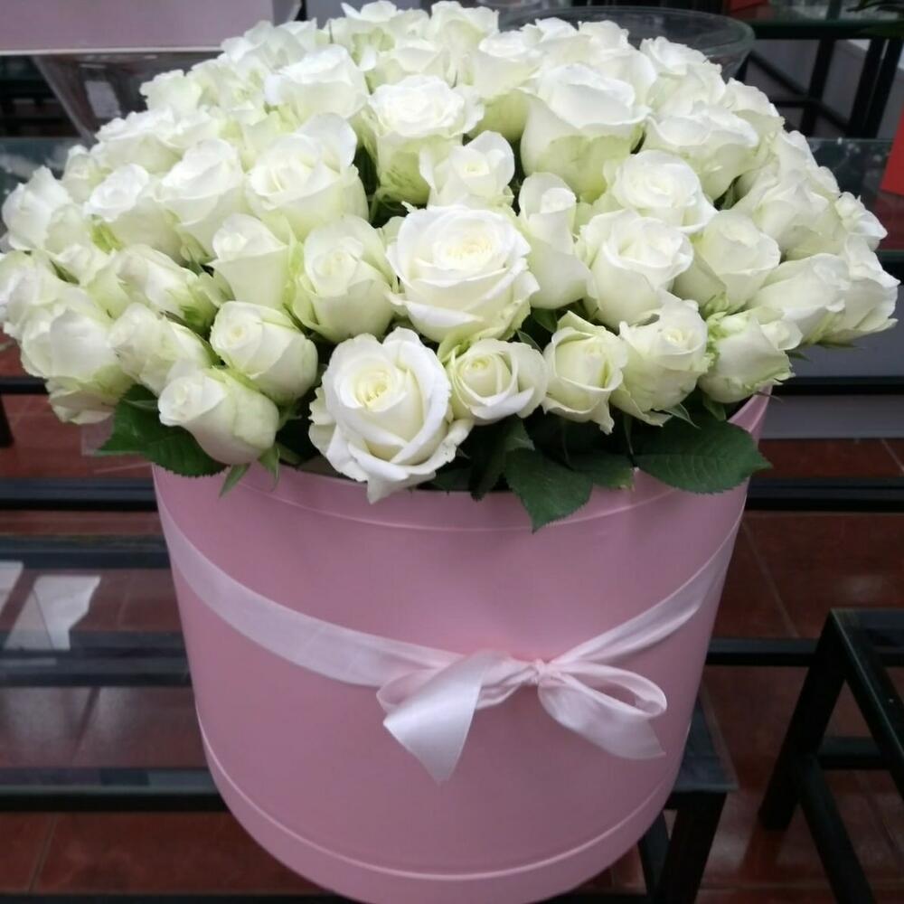 101 белая роза в коробке