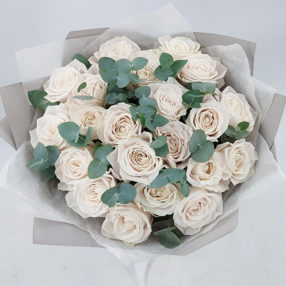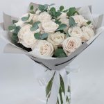 Роза Эквадор Премиум – 21 шт.эвкалипт цинерея пучок – 1 шт.Упаковка дизайнерская – 1 шт.