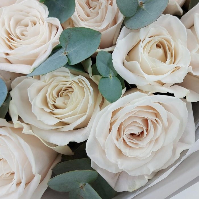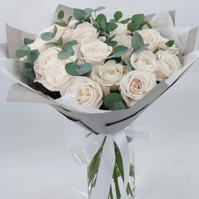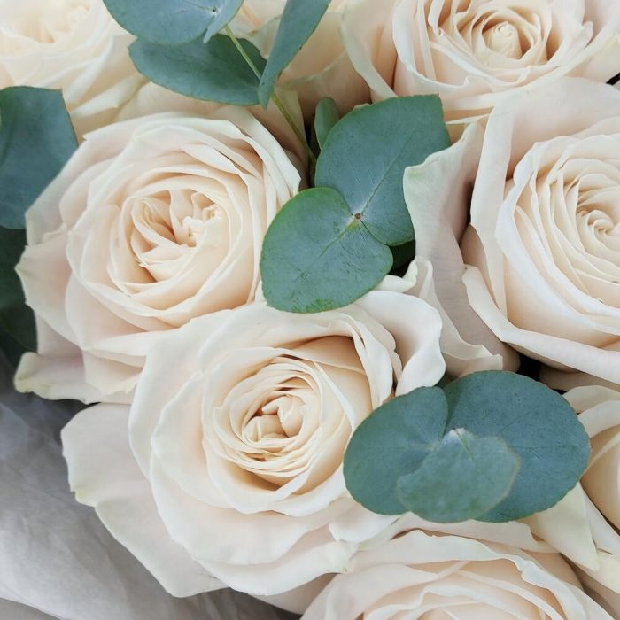 21 белая роза с эвкалиптом