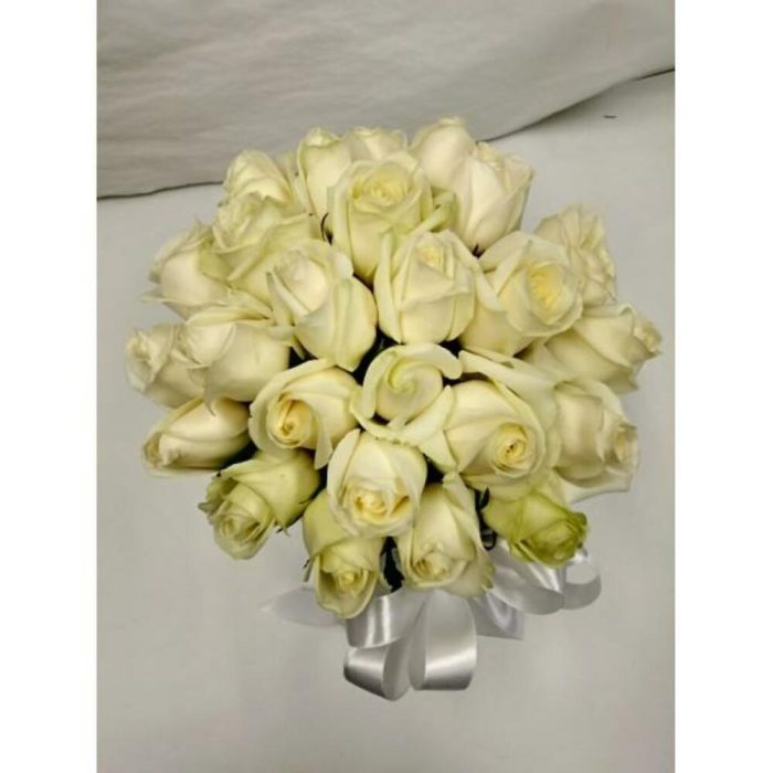 25 белых роз Кения с оформлением