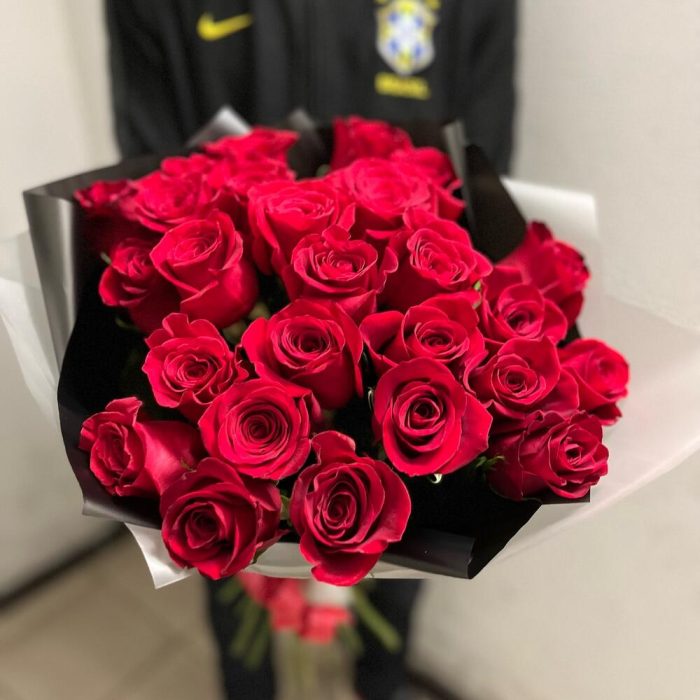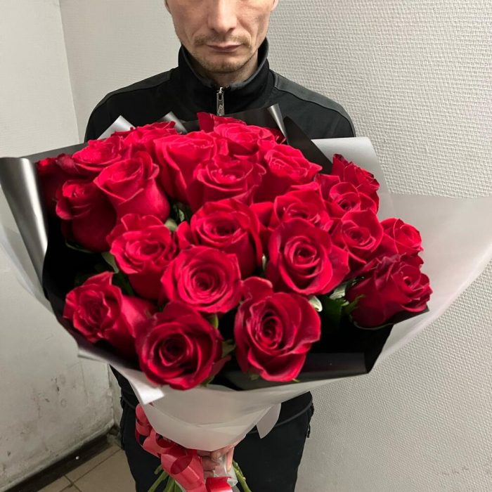 розы эквадор 70 см – 25 шт.Лента атласная – 1 шт.Дизайнерская упаковка – 1 шт.