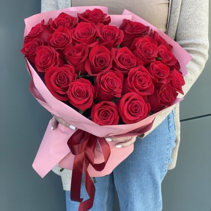 Роза Мондиаль – 26 шт. Роза пинк мондиаль – 25 шт. Оформление атласная лента – 1 шт.
