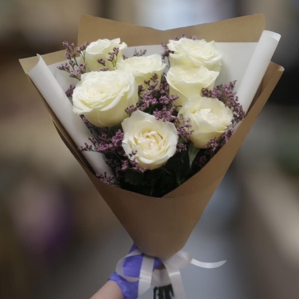 Лимониум – 3 шт.Упаковка – 1 шт.белая роза – 7 шт.