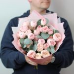 7 кустовых пионовидных роз мэнсфилд парк с эвкалиптом. Букет 22 KimFlo