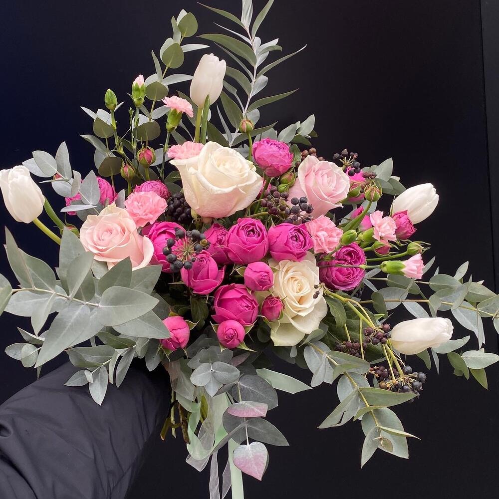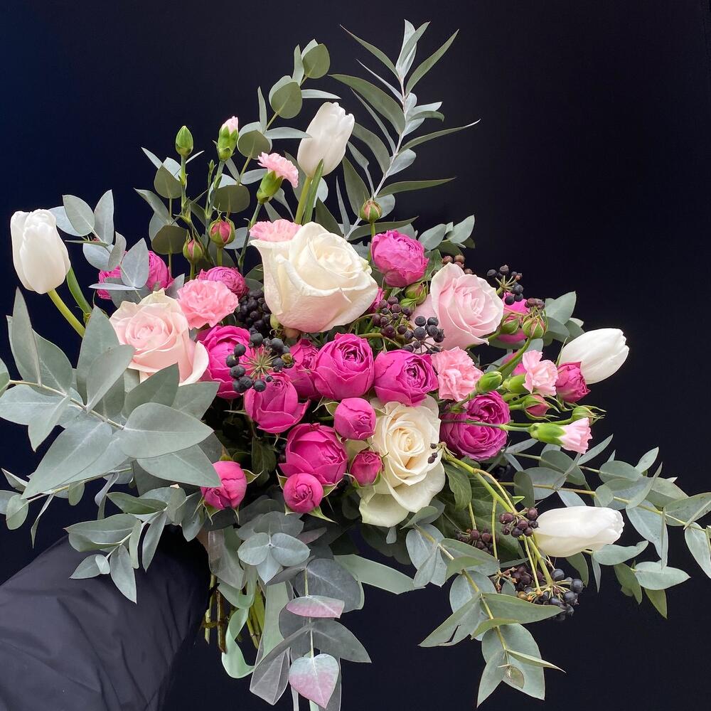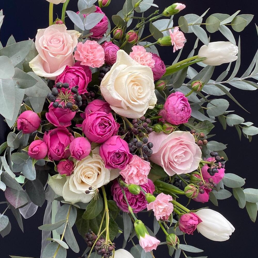 Гвоздики, Кустовые розы, Пионовидные розы, Розы