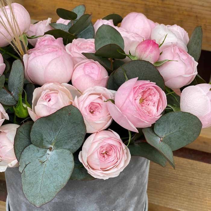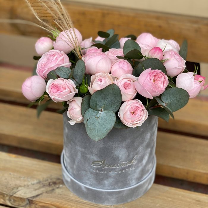 Яркие и красивые цветы с пионовидными розами в большой коробке