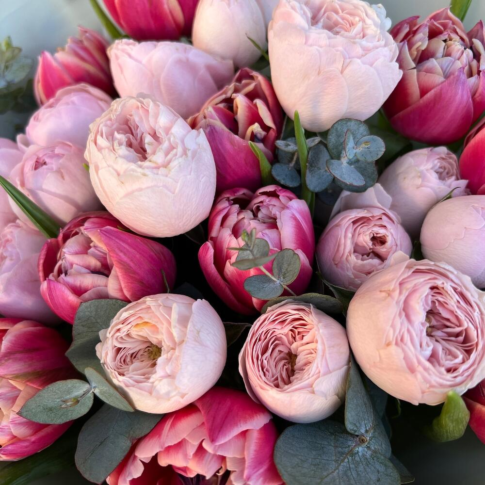 Категории: Пионовидные розы, Розы, Тюльпаны