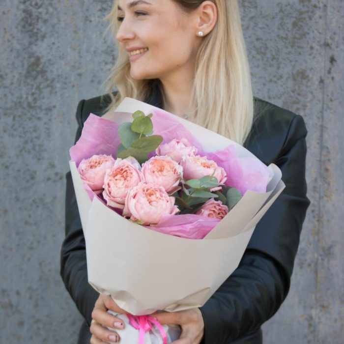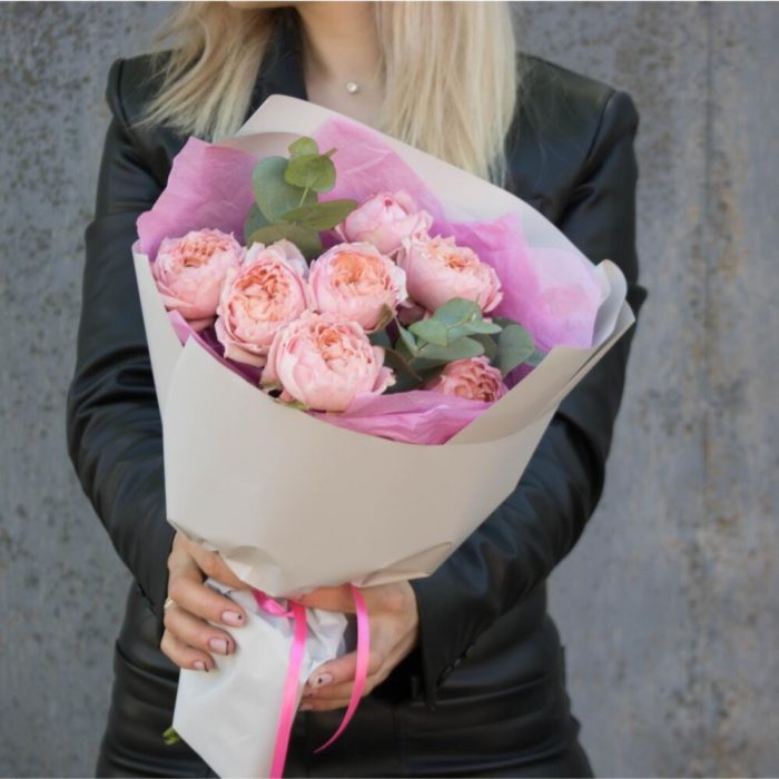 Букет Розовые сладости из 9 веток пионовидных роз