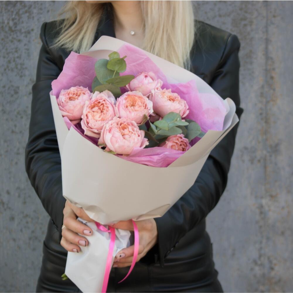 Эвкалипт – 2 шт. роза пионовидная кустовая джульетта – 3 шт.