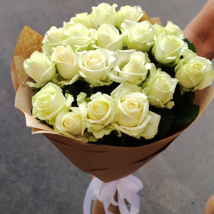 роза украинская белая – 19 шт. бумага крафт – 1 шт.