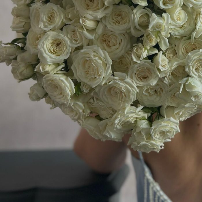 Атласная лента – 1 шт.Кустовая пионовидная роза – 25 шт.
