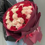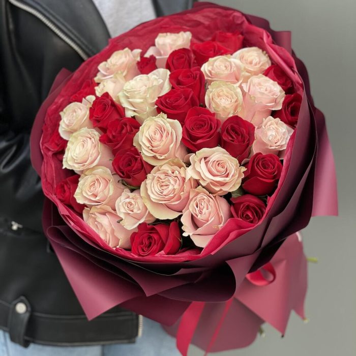 Букет из 37 роз микс (красных и розовых) в оформлении!