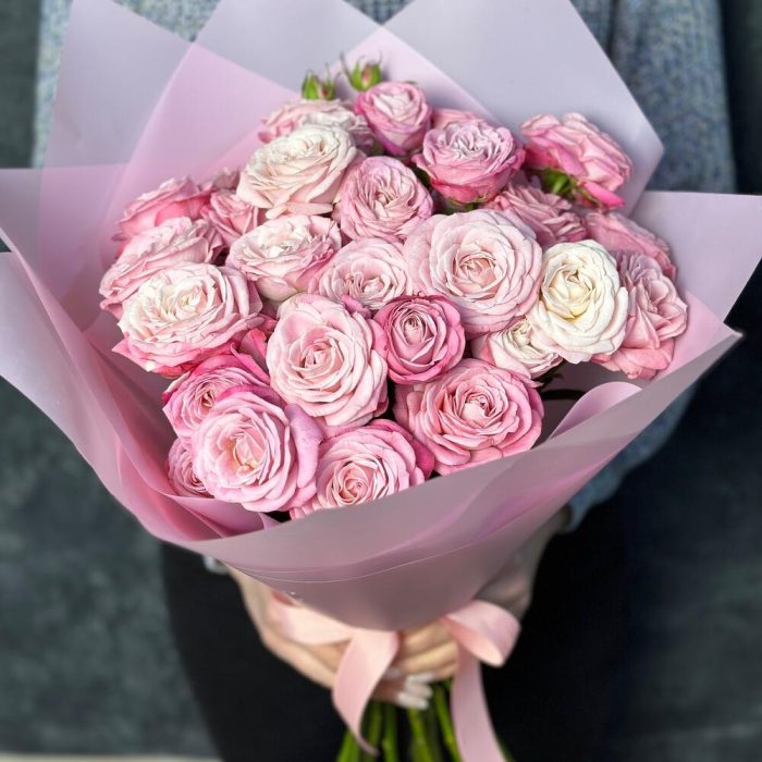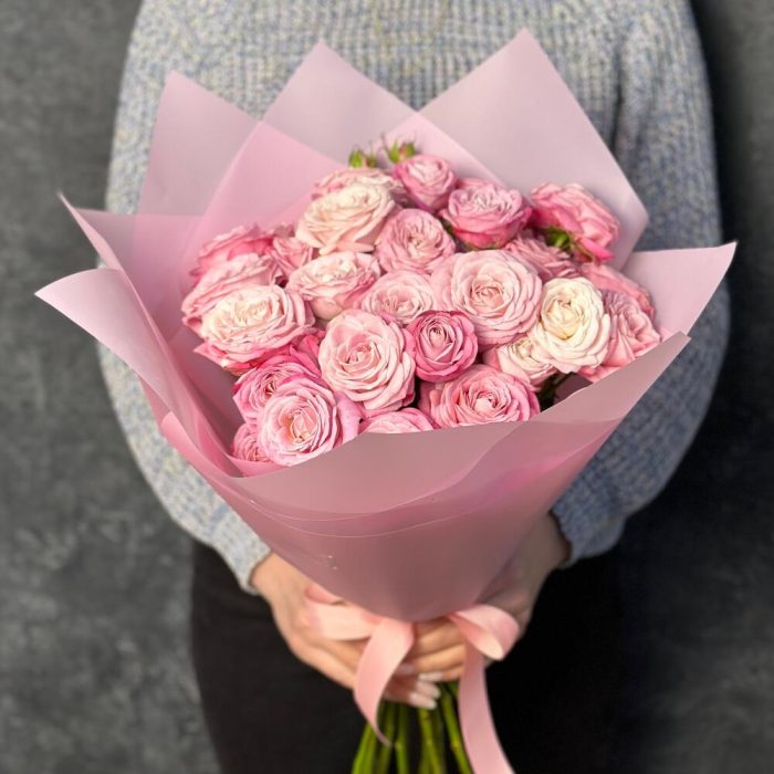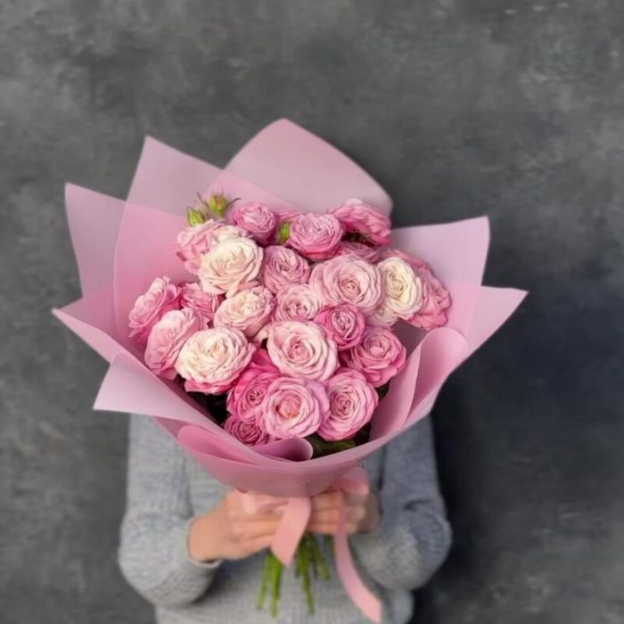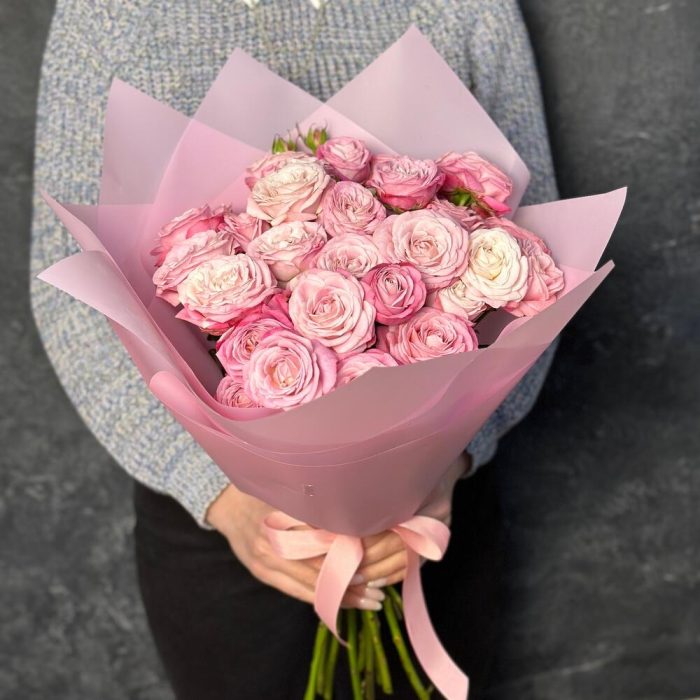 Букет из 11 кустовых пионовидных розовых роз