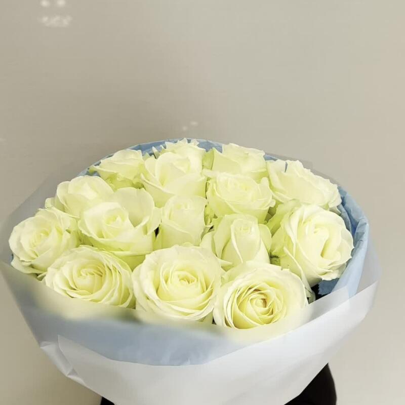 Букет из 15 белых роз в упаковке