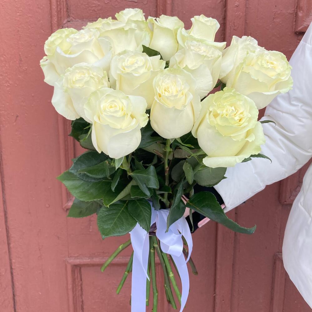 Букет из 15 роз белых со статицей
