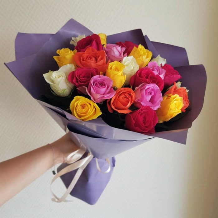 Лента – 1 шт.Роза Эквадор – 19 шт.Крафт бумага – 4 шт.