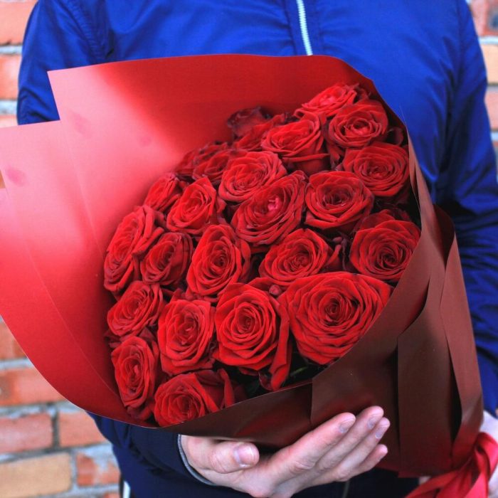 Букет из 25 красных роз (Кения) 30 см