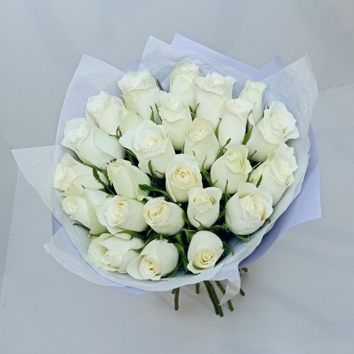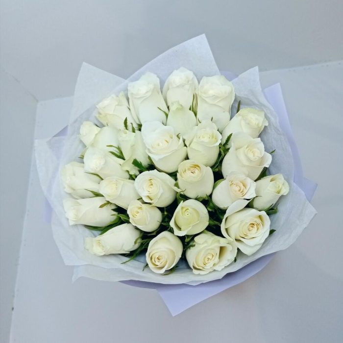 Букет из 25 роз белых в лавандовом
