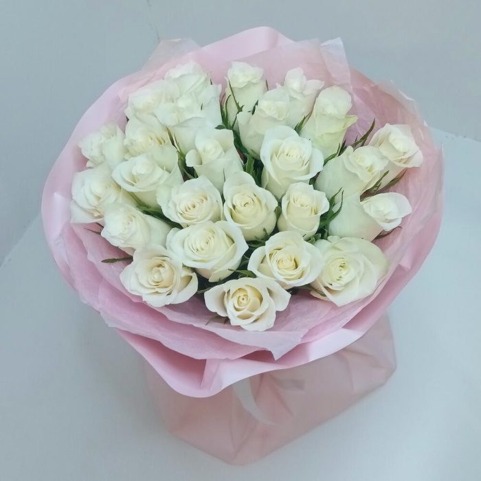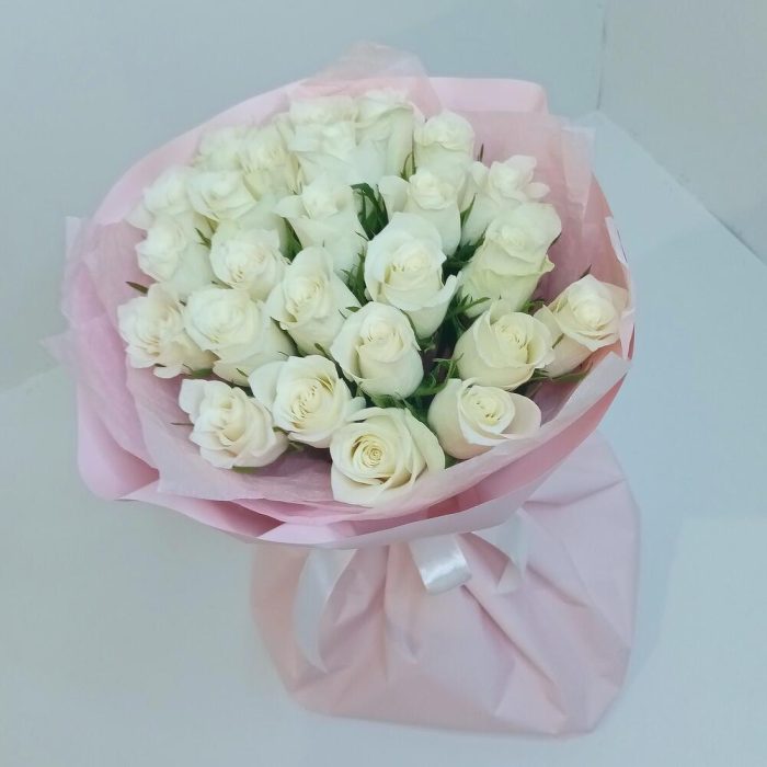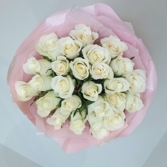 Букет из 25 роз белых в розовом
