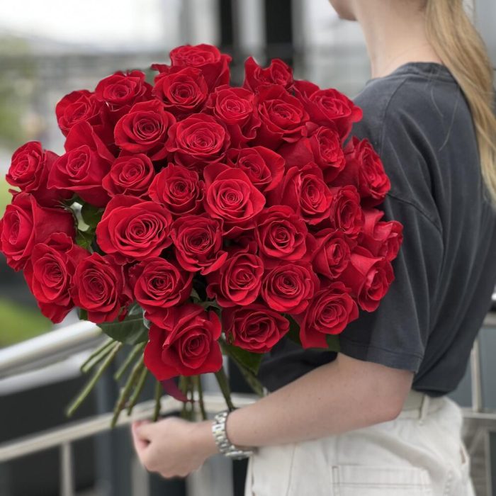 Красная роза – 35 шт. оформление – лента – 1 шт.