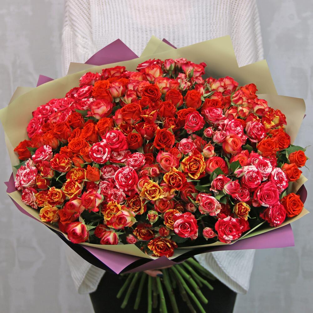 Букет из 35 высоких кустовых роз (Кения) 60-70 см в стильной упаковке