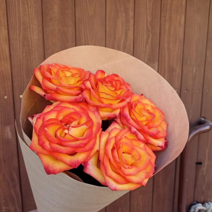 Роза – 5 шт.Упаковка дизайнерская – 1 шт.Лента атласная – 1 шт.