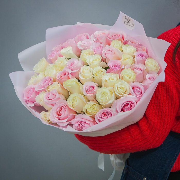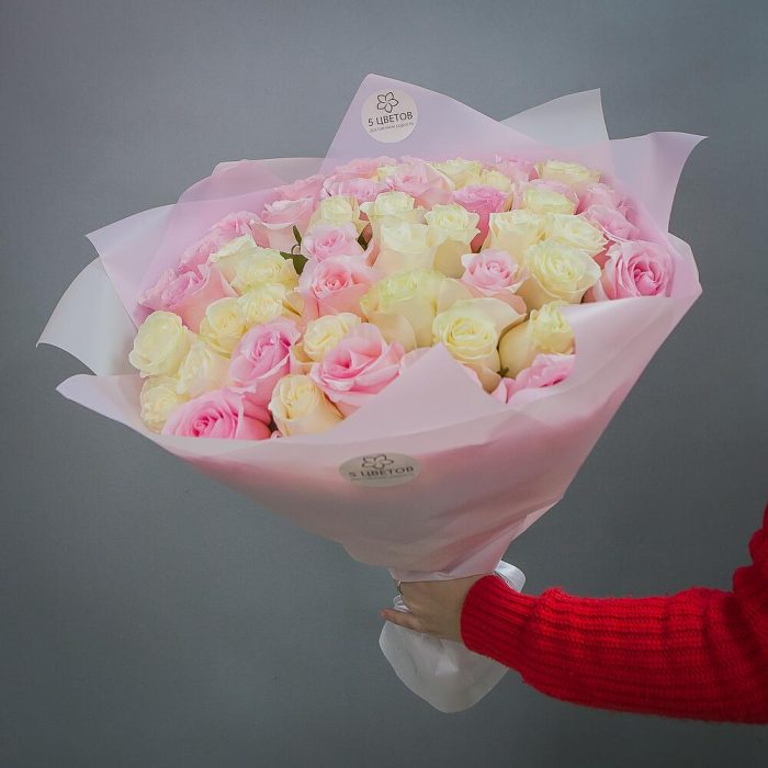 Букет из 51 белой и розовой розы