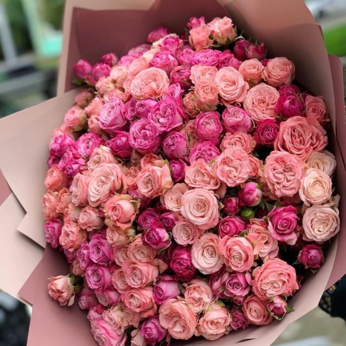 кустовая роза мисти баблез – 51 шт. Упаковка дизайнерская – 3 шт. Открыточка с вашими пожеланиями – 1 шт.