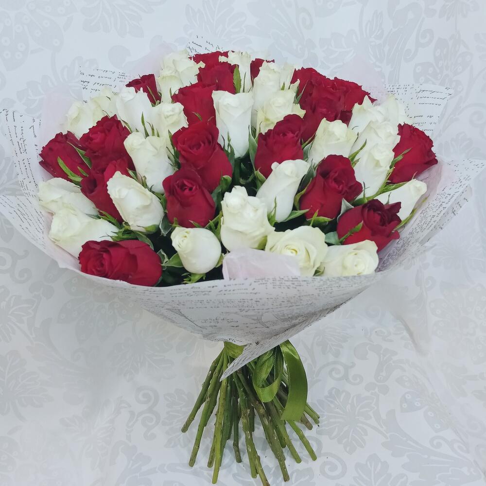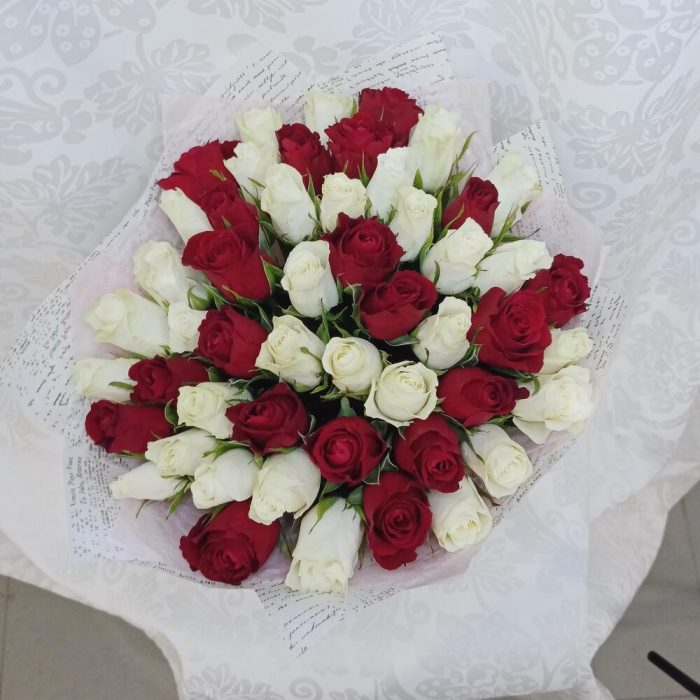 Букет из 51 розы красно-белый микс
