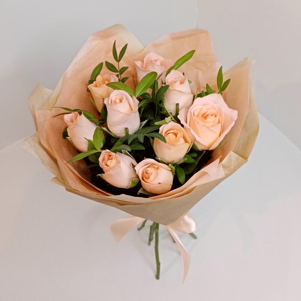 Дизайнерская упаковка – 1 шт.роза кения – 9 шт.зелень фисташки – 1 шт.