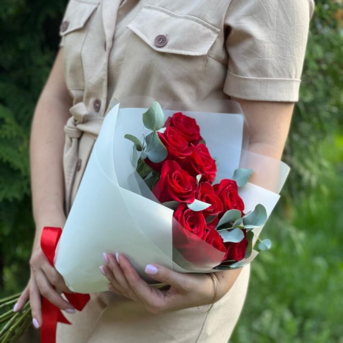 Букет из 9 Роз с эвкалиптом