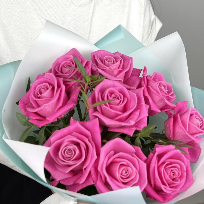 Букет из 9 розовых роз. Букет 387 ALMOND ROSES