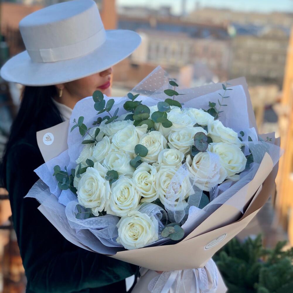 Роза – 25 шт.Эвкалипт – 5 шт.