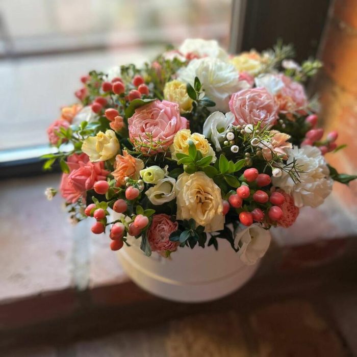 Букет из цветов в декоративной коробке “Садовая фея”