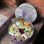 “Атлас☁️” – цветочная композиция с зефиром в деревянном ящике