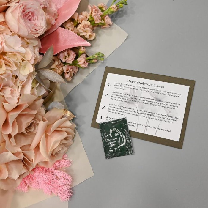 - Сроки возврата: Претензии по качеству букета принимаются в течение 24 часов с момента его получения.