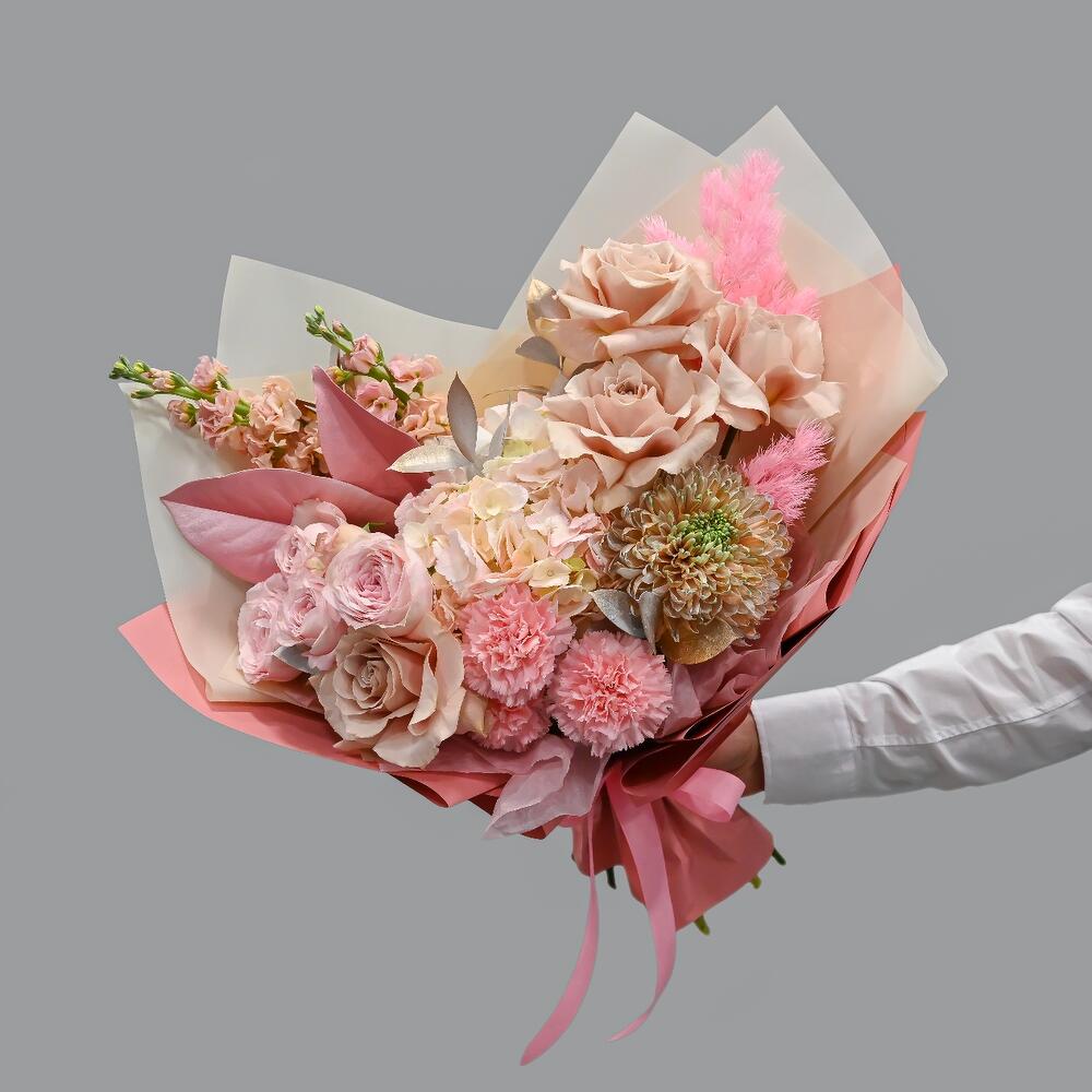 Категорий: Гвоздики, Гортензии, Кустовые розы, Пионовидные розы, Розы, Хризантемы