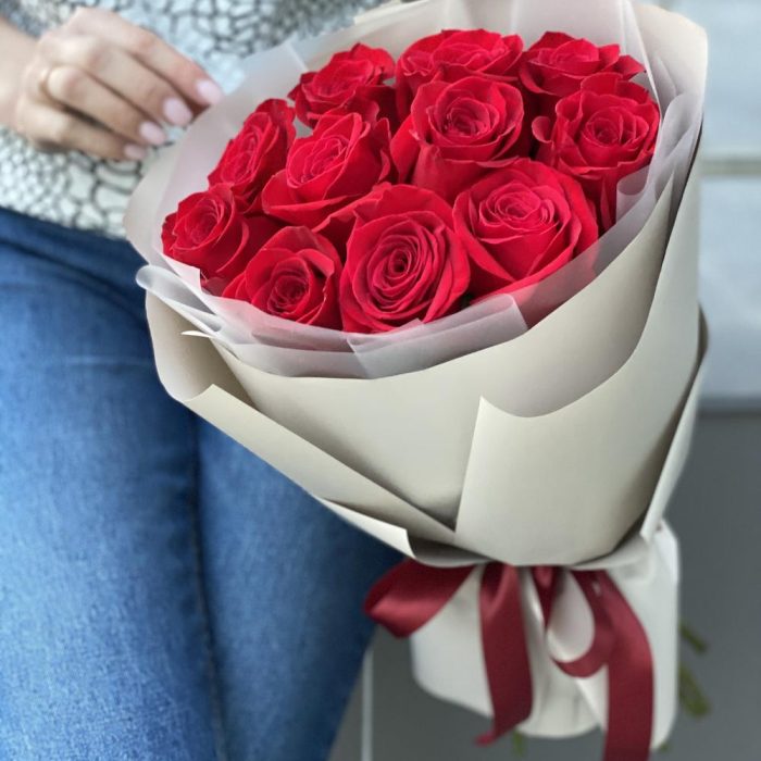 Метки: 11 роз, Красные розы, от 2000 до 3000 руб, Роза 50 см