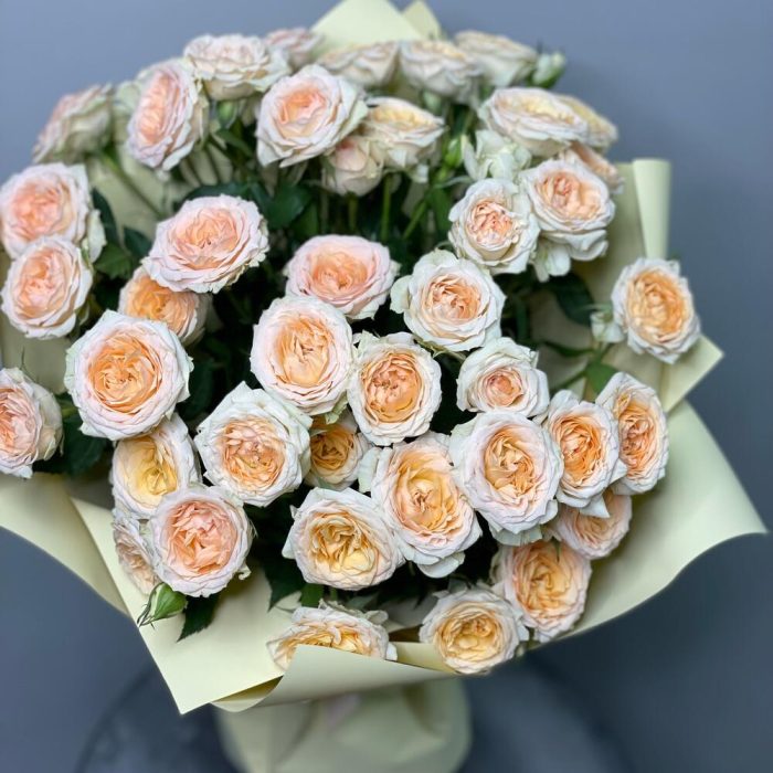 Букет из кустовых роз с оформлением