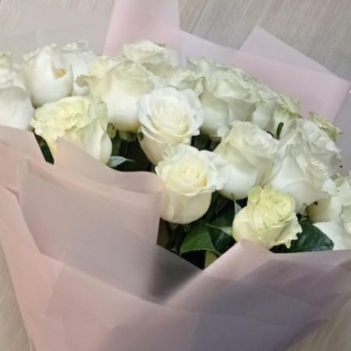 Метки: 25 роз, Белые розы, от 4000 до 5000 руб, Роза 70 см