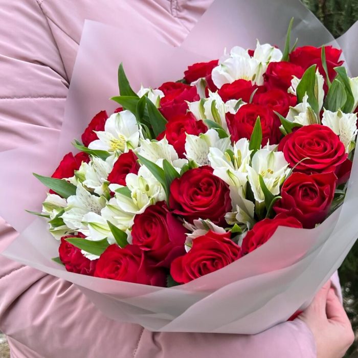 Букет из роз и Альстромерии