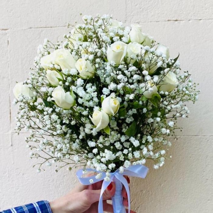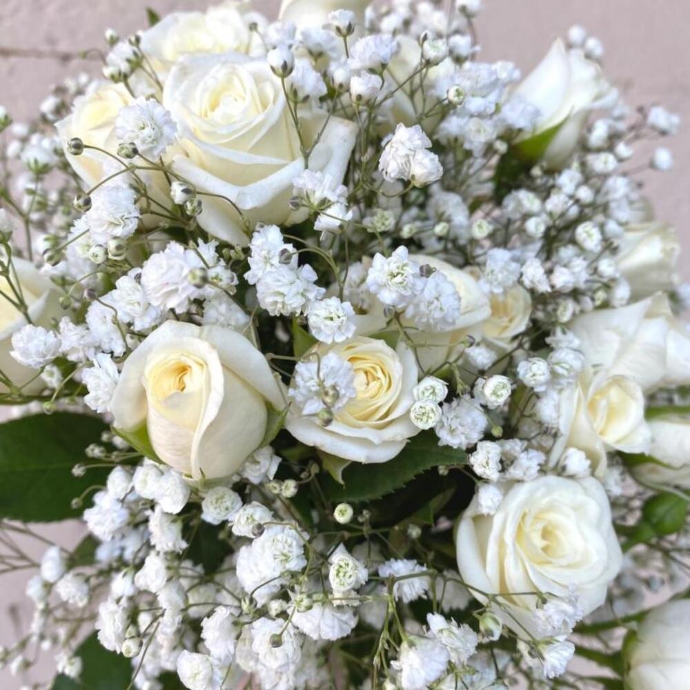 Букет невесты из кустовой розы и гипсофилы