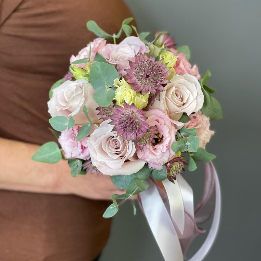 Букет невесты с нежной розой «Розовая пудра»