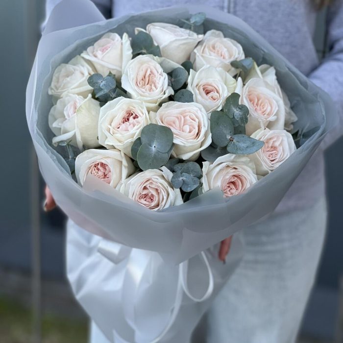 Эвкалипт – 1 шт. Оформление – 1 шт. роза ohara – 15 шт.