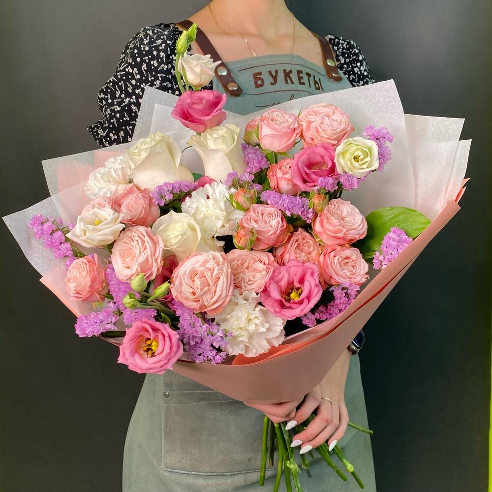 Категорий: Гвоздики, Кустовые розы, Лизиантусы, Пионовидные розы, Розы