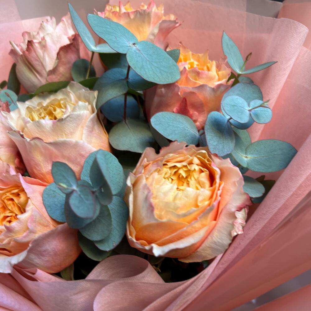 Букет пионовидной розы «Персиковое сердце»
